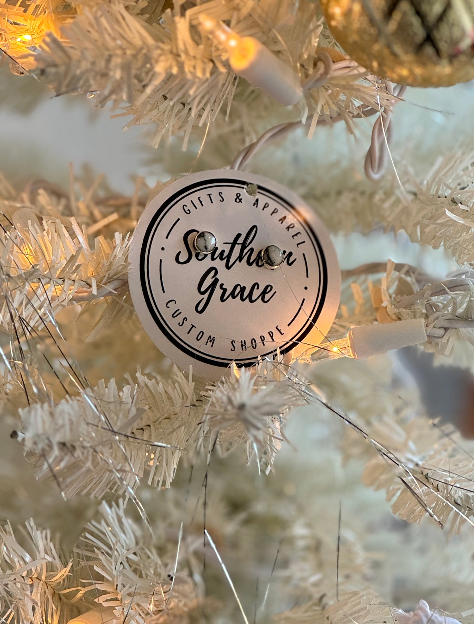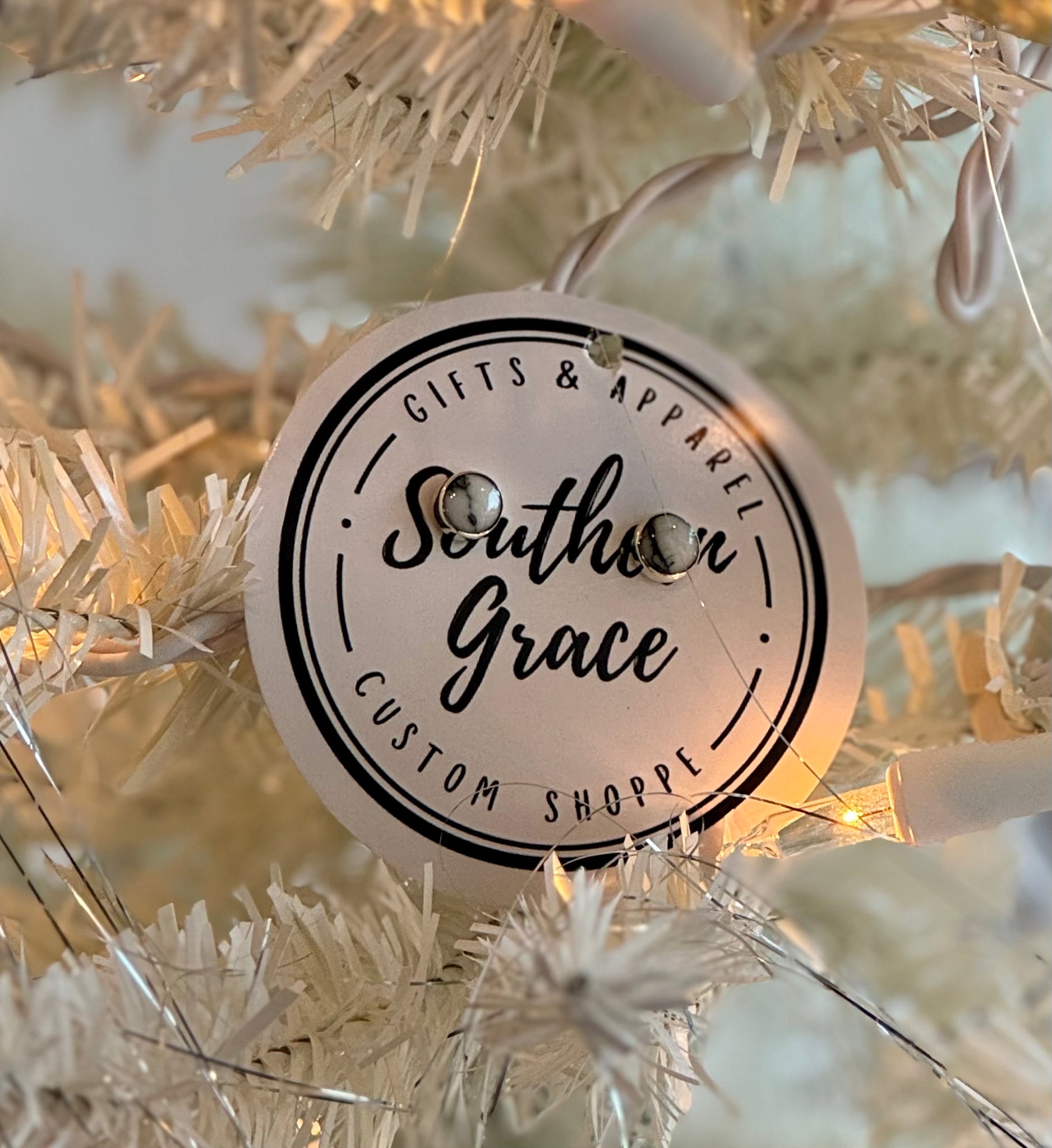 These stud earrings are Howlite White set in Sterling Silver. Perfect for pairing with turquoise, and adorable as a second ear lobe hole earring!