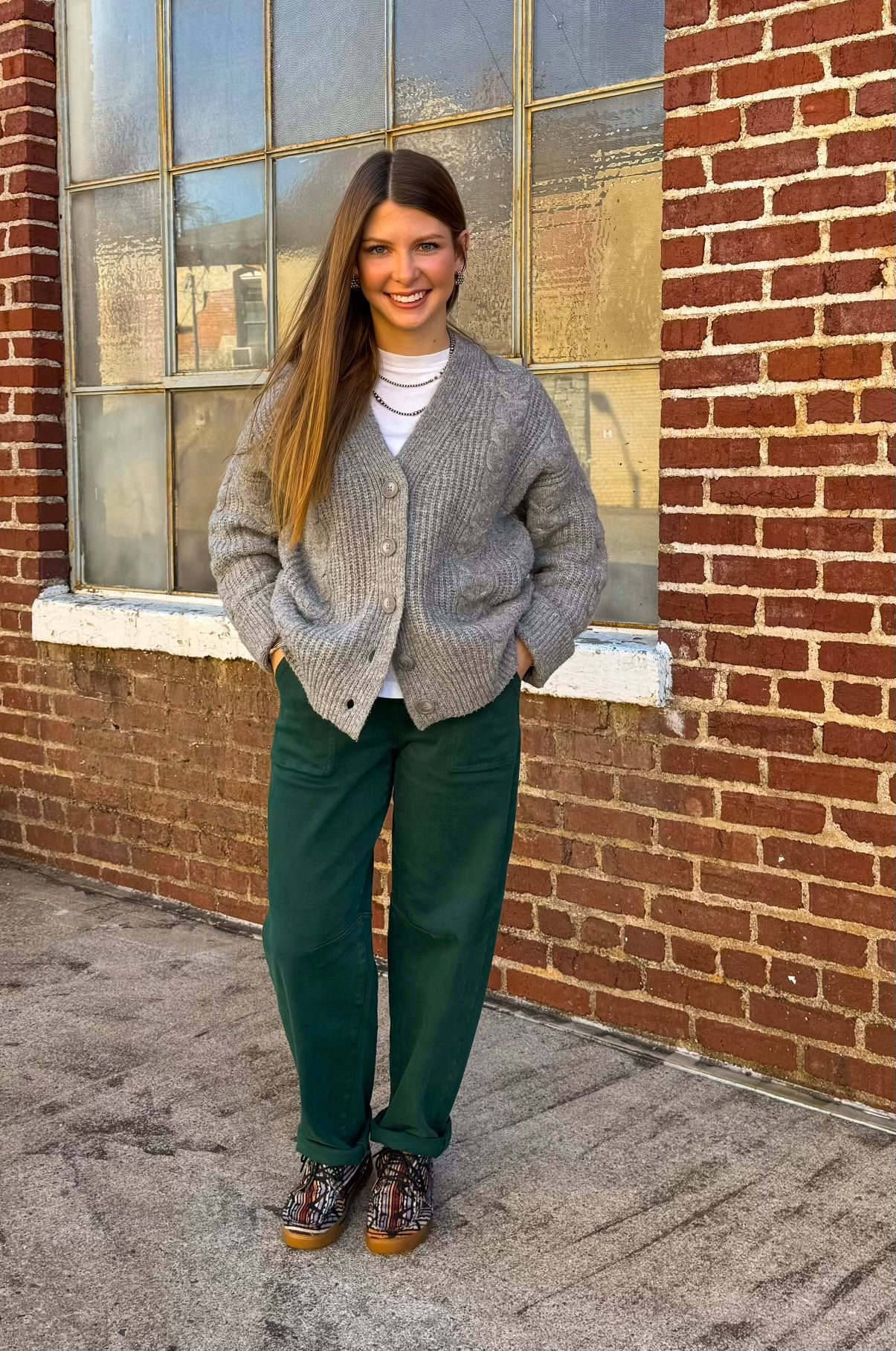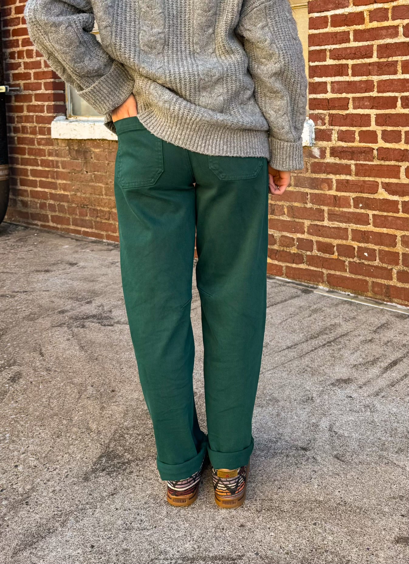 The Greenland Barrel Jean features a soft material in a stylish design with a fun dark green color! Great for dressing up your work outfits, or adding a fun flare to your favorite graphic tees.